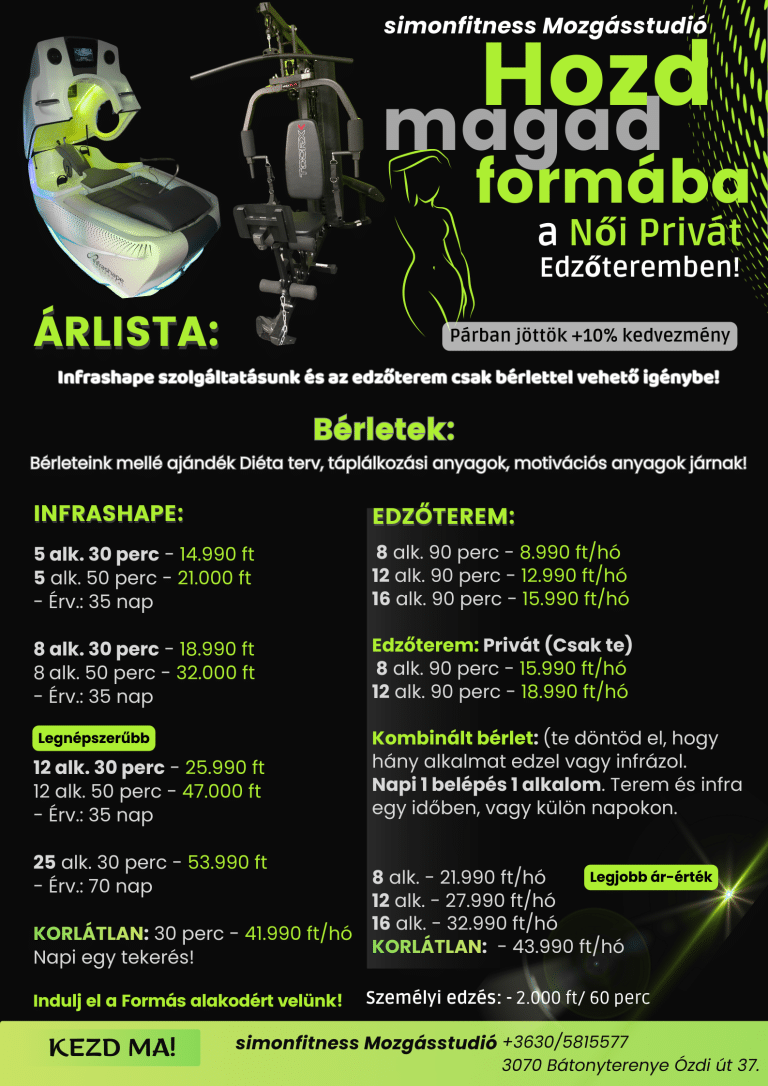 Folyamatos támogatás az edződtől, illetve AJÁNDÉK Diéta terv, Étrend tippek, Fogyókúrás és Életmód anyagok! Megbeszéljük a céljaid és már indulhatsz is!